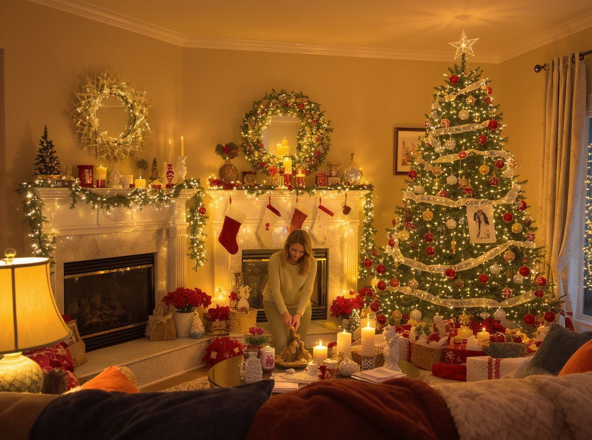 Hagyj „pihenő” felületeket is. Ha a karácsonyfa és a kandallópárkány rendkívül gazdagon díszített, akkor a szemközti falat vagy egy bútordarabot hagyd viszonylag szellősen. Ez a kontraszt segít, hogy a fókuszpontok valóban érvényesüljenek, és a szemnek legyen hol megpihennie.