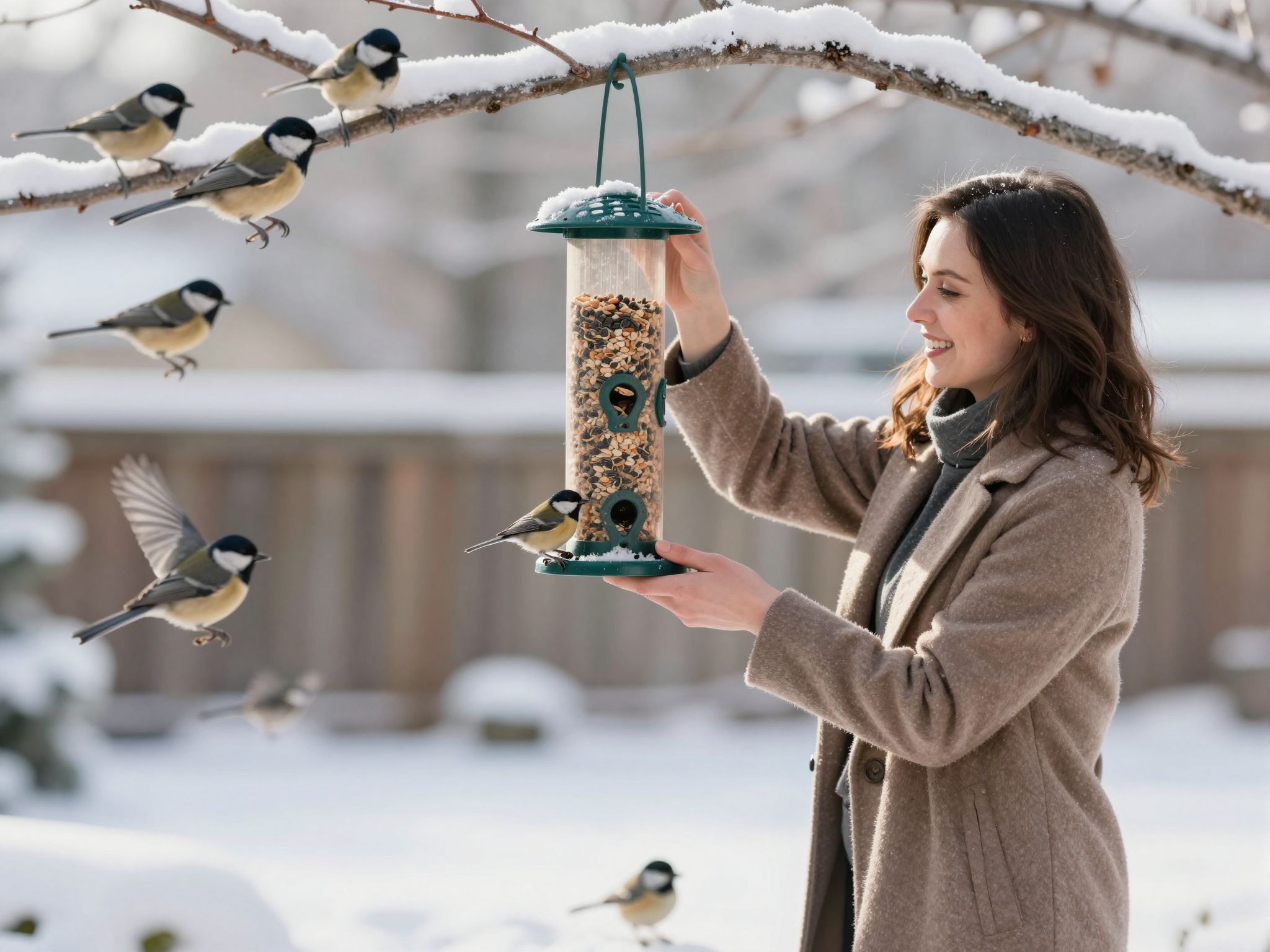 A legtöbb etetőt a cinegék, verebek és pintyek látogatják, de ha változatosabb étrendet kínálunk, más fajokat is a kertünkbe csalogathatunk, mint például a harkályokat, rigókat vagy vörösbegyeket.