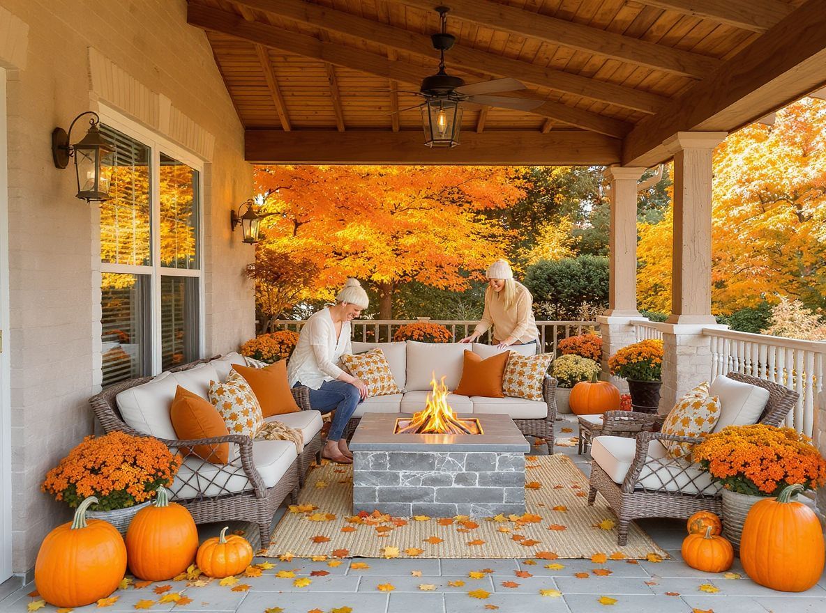 A fedett terasz esetében érdemes a természetes alapokat megtartani (fa, kő, semleges falak), és a színeket a kiegészítőkön keresztül bevinni. A legfontosabb őszi színek:
